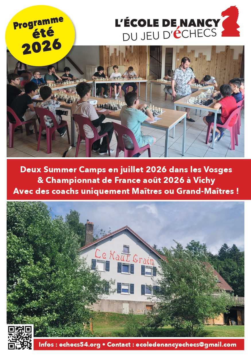 C’est parti pour une 6ème année « Ecole de Nancy du jeu d’échecs » ! Ce sera donc la promotion « Botvinnik », du nom du 6ème champion du monde de l’histoire 🙂 Vous trouverez tous les détails sur notre plaquette en photo ci-dessous …